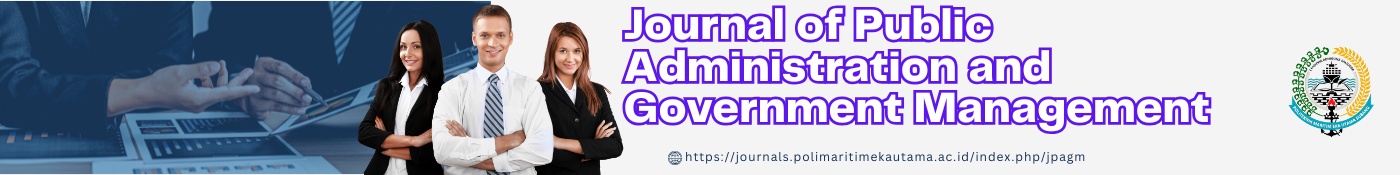 Journal of Public Administration and Government Management (JPAGM) is an open-access scientific journal that publishes research and study reports on public administration, governance, and government management, with e-ISSN XXXX-XXXX. This journal is published 2 times a year (March and September) by the Politeknik Maritim Eka Utama, West Java, Indonesia. The journal provides an academic platform for scholars, practitioners, and policymakers to disseminate research findings, innovative ideas, and critical analyses related to the management of public sector organizations and public policy processes.